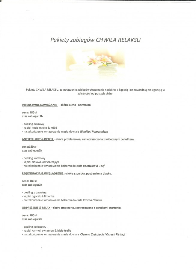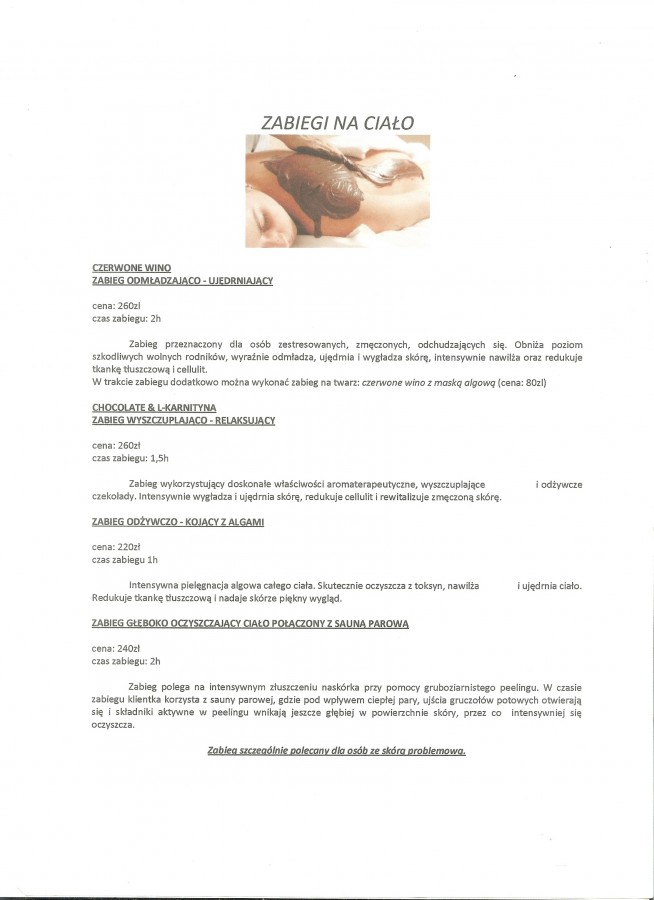 • ZABIEG NA CIAŁO - peeling z masażem całego ciała lub masaż całego ciała